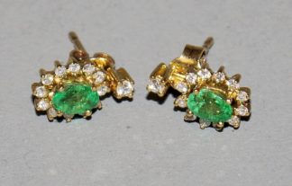 0842-Feine Smaragd-Ohrstecker mit Brillanten, Frankreich, frühes 20. Jh.