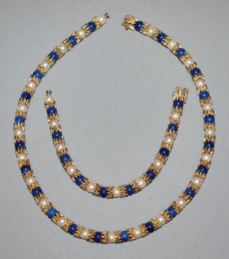 0847-Zweiteiliges Designer-Schmuckset mit Perlen und Lapislazuli, Gold