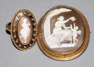0852-Cameo-Ring und Cameo-Brosche, Gold