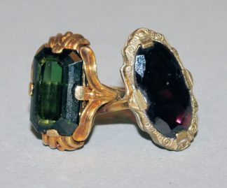 0856-Feiner Turmalin-Ring um 1920/30 & Granat-Ring um 1900, Gold