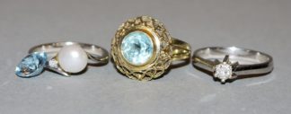 0859-Drei Ringe mit Brillanten, Perle und Aquamarin, ab ca. 1920