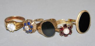 0860-Fünf Ringe mit Steinbesatz, Gold/Silber