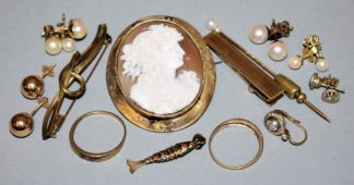0862-Sammlung sammelwürdiger Schmuck, 19.Jh. bis frühes 20. Jh., Gold/ Schaumgold/vergoldet