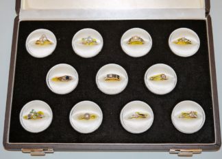 0871-24 Ringe mit Brillanten, Smaragden, Turmalinen, Rubinen u.a. Farbsteinen, Gold