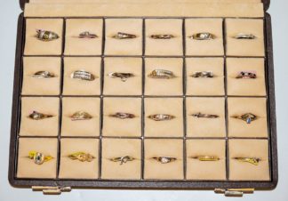 0870-24 Ringe mit Brillanten, Zirkonia, Saphiren und Onyx, Gold