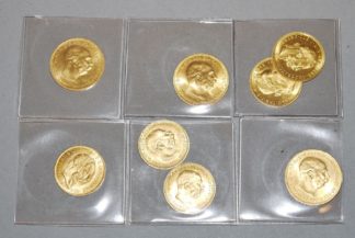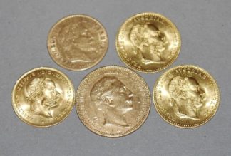 0904-8 Goldmünzen: 1 x 4 Florin, 1892, 2 x 10 Kronen 1912, 3 x 20 Kronen 1915, 2 x 1 Dukat 1915 ...