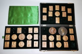 0921-Replika-Sammlung historischer Medaillen in Präsentationskoffer mit zwei Originalen deutscher Chemiker