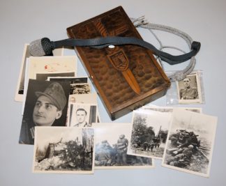 1038-Kleiner Militaria-Nachlass mit Fotografien, Holzkiste mit Truppenemblem u. Portepee, WK II