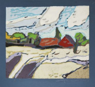 0121-Klaus Fußmann, Landschaft mit roten Dächern, signierter Farblinolschnitt von 2000