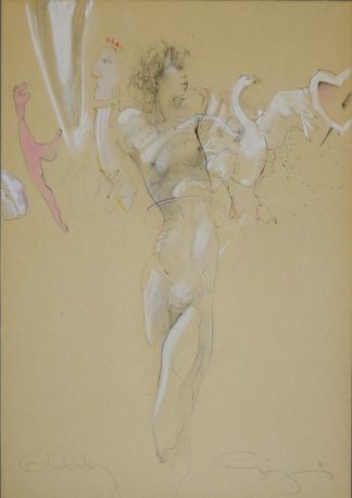 0129-Jürgen Görg, “Glücksbotin”, signierte Zeichnung/ Pastell von 1988