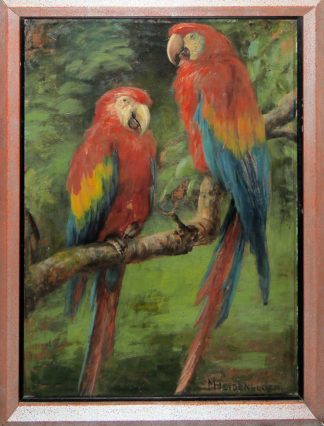 0162-Martha Heydenbluth, “Roter Ara”, Ölgemälde, Leipzig um 1915/20, alt gerahmt