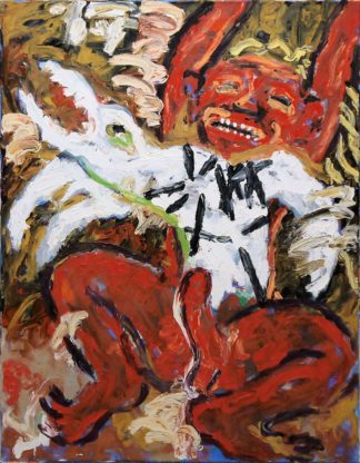 0163-Franz Hitzler, Figur mit Tier, großes Ölgemälde von 1974/75