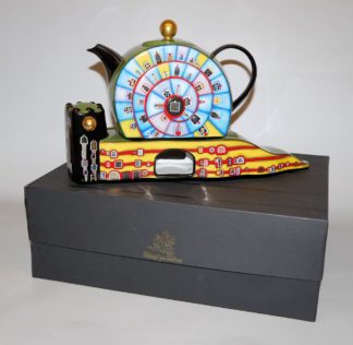 0166-Friedensreich Hundertwasser, “Schneckenobjekt”, Porzellan-Kanne auf Stövchen, ...
