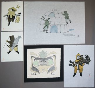 0175-5 x Inuit Kunst: Kenojuak Ashevak, Solomon Karpik, 3 x Ashona Pitseolak, in schöner Sammelmappe