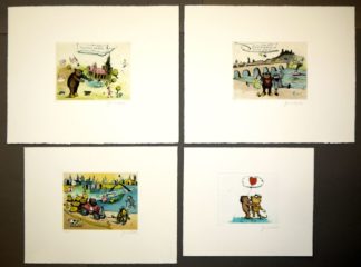 0176-Janosch, Vier Motive mit Bär und Tiger, 4 signierte Farbradierungen