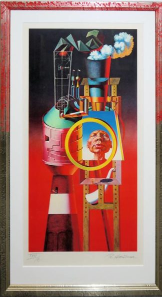0092-Joseph Duncan, “Une petite longueur d’avance”, Mischtechnik von 1973, gerahmt