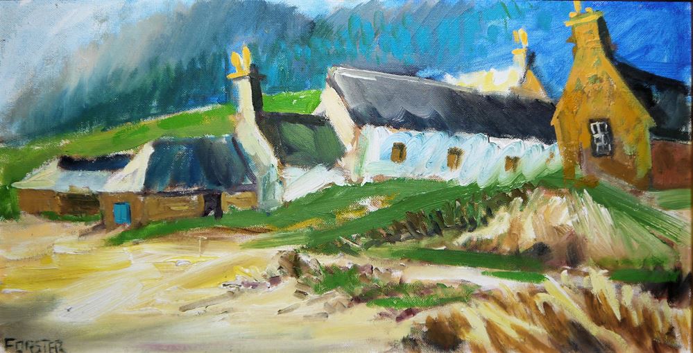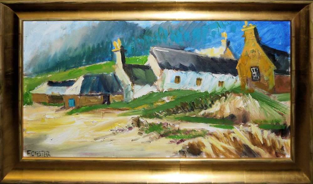 Forster, XX. Häuser in der Bretagne, Öl/Lw., 40 x 80 cm, links unten signiert, im Goldrahmen