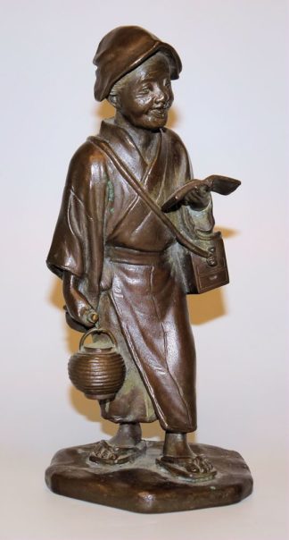 0672-Lesender Wanderer, Bronzeplastik der Meiji-Zeit, Japan um 1900