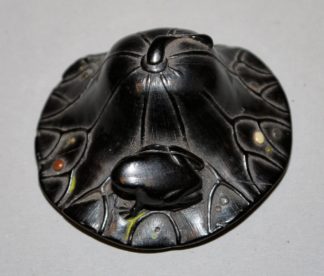 0679-Frosch auf Lotusblatt, Netsuke aus Ebenholz, Japan 19. Jh., Prov. Slg. Hanns Jatzlau