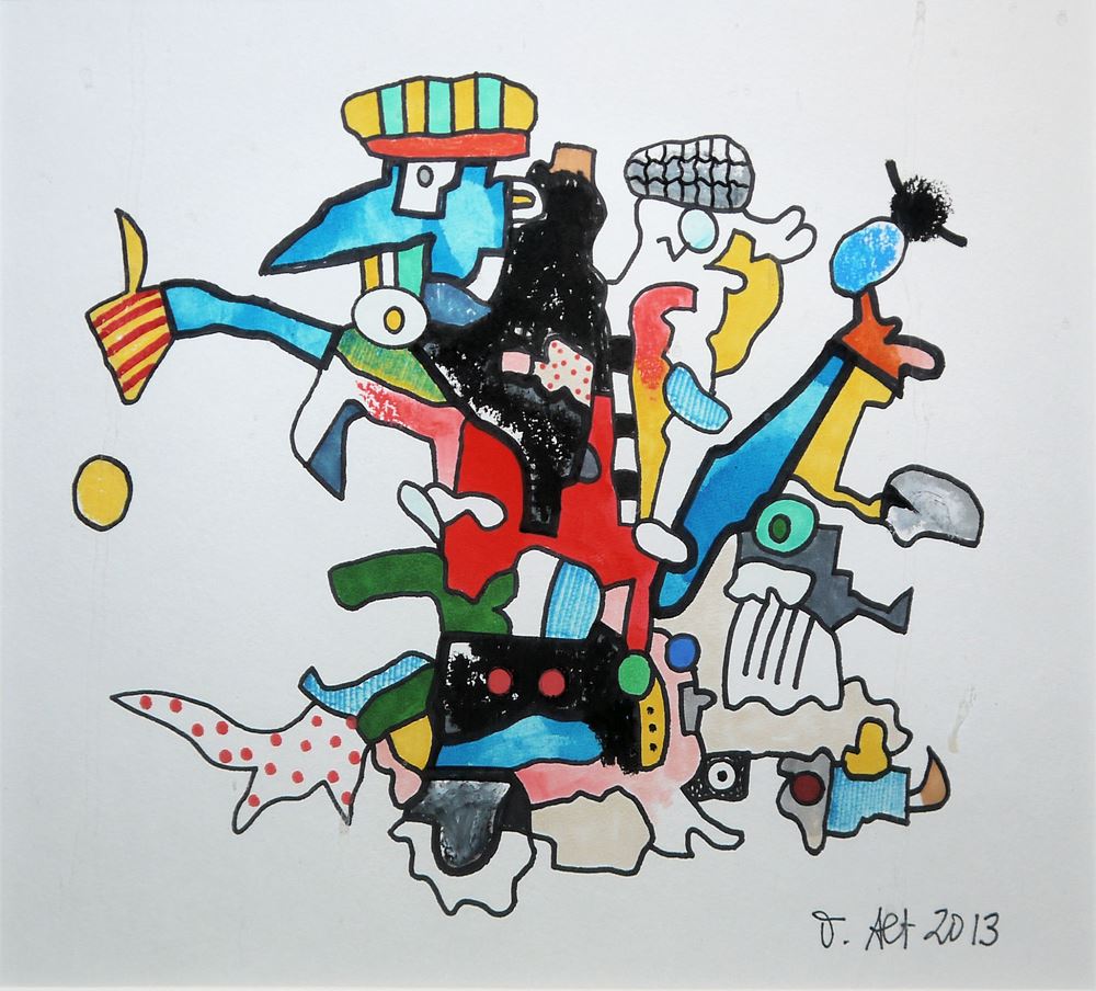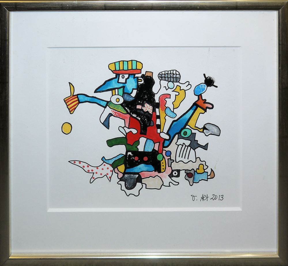 Otmar Alt, *1940 Wernigerode, "Zufriedenheit", Mischtechnik (Tusche/Aquarell/Acryl), ca. 28 x 34 cm, signiert, datiert 2013, verso bezeichnet, unter Glas und P.p. gerahmt
