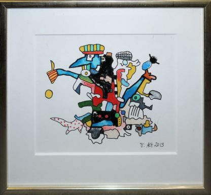 0007-Otmar Alt, “Zufriedenheit”, signierte Mischtechnik von 2013, gerahmt