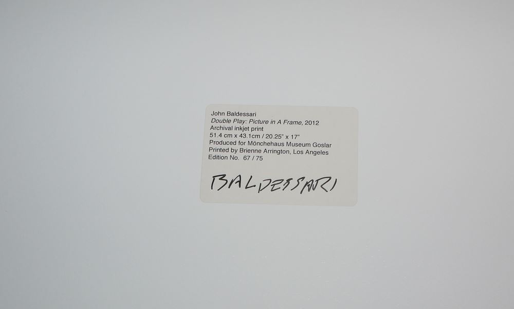 John Anthony Baldessari, 1931 National City, Kalifornien - 2020 Venice, Kalifornien, US-amerikanischer Künstler und bedeutender Vertreter der zeitgenössischen Konzept- und Medienkunst, hier: "Double Play" aus "Picture In A Frame", Archival Inkjet Print, 51,4 x 43,1 cm, verso mit Etikett, handsigniert, nummeriert 67/75, Auflage für Mönchehaus Museum Goslar.