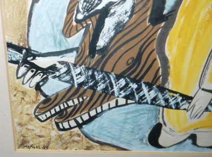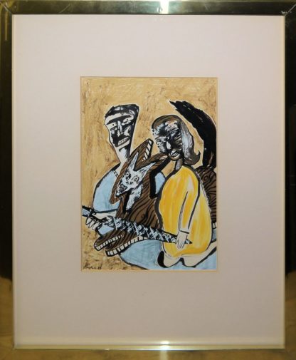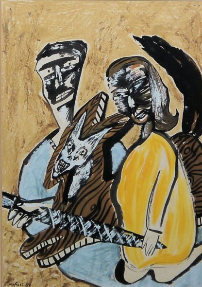 Ina Barfuss, Paar mit Katze, Mischtechnik von 1983, gerahmt