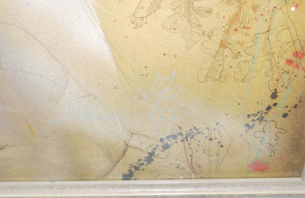Mersad Berber, 1940 Bosanski Petrovac, Königreich Jugoslawien - 2012 in Zagreb, "Ramona", Farblithographie, übermalt und collagiert, ca. 92 x 73 cm, signiert, datiert u. betitelt, unter Glas im Holzrahmen, dazu M. Karamehmedovic, Mersad Berber, Galerien- Graphische Editionen, Hans Hoeppner Hamburg-München, 1979