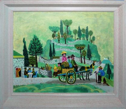 0038-Fritz Biermann, “Straße von Florenz nach Greve/Chianti”, “Schlierseebär”, “Markt in Landshut (Isar)” und “Dorf in der Ukraine”, vier naive Ölgemälde, 1960er/70er Jahre, gerahmt