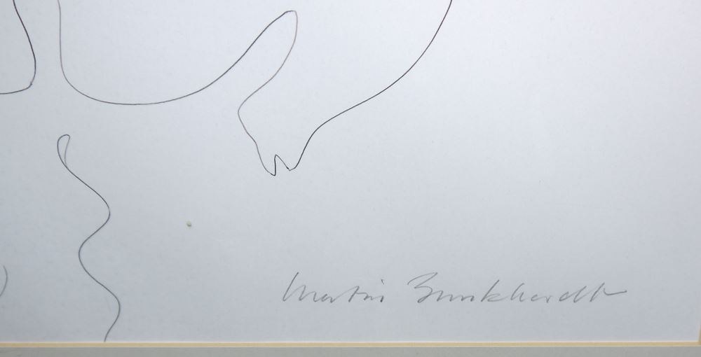 Martin Burkhardt, *1967 Stuttgart, "Ikone V ("Befruchtung")", Bleistiftzeichnung, 33 x 43,5 cm, sign., bez., hinter P.p. und Glas gerahmt, dazu Fotografie der Komposition, Weiß auf Schwarz, 17,5 x 22 cm, SW-Abzug, verso bez. u. sign., o. Rahmen