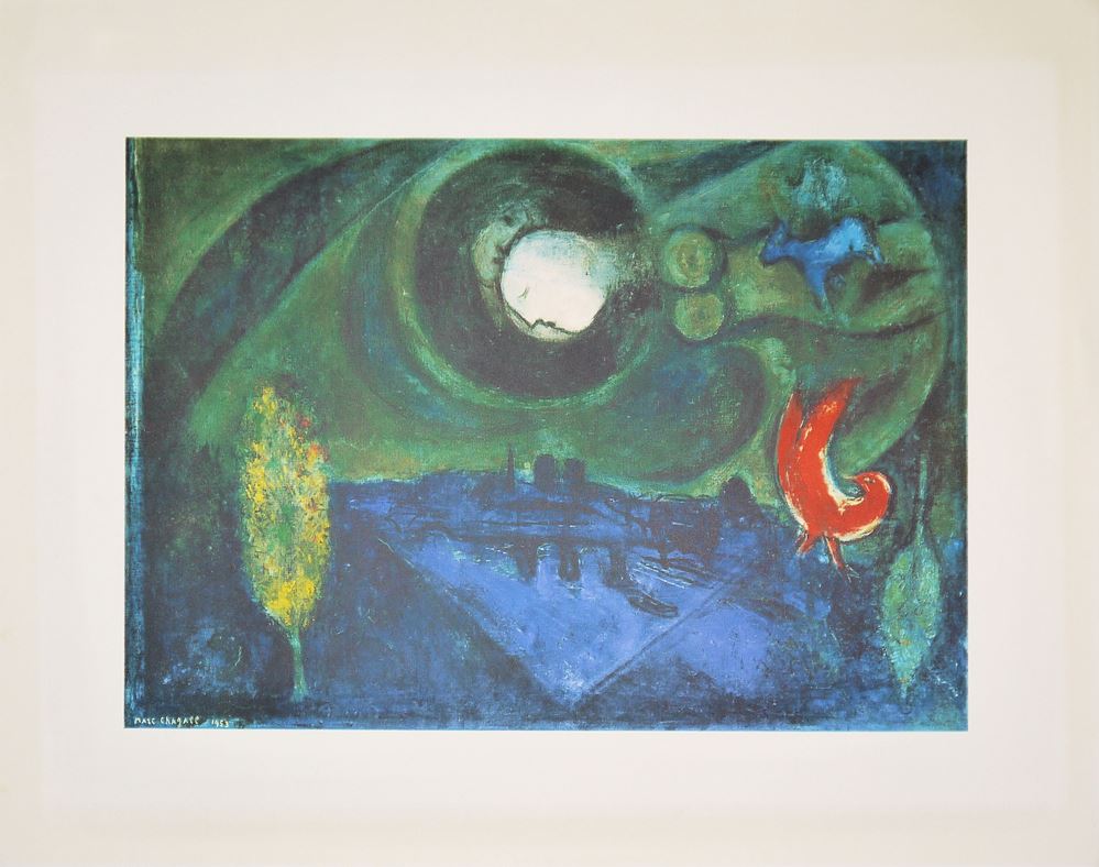 Marc Chagall, 1887 Peskowatik/ Witebsk - 1985 Saint Paul de Vence, "Le Quai de Bercy", Lichtdruck, nach einem Original von 1955, 40 x 59 cm, Edition Davo Verlag Günter Bläse, Stuttgart, Druck Lucas Lichtdruck GmbH, Stuttgart, Copyright A.D.A.G.P. Paris & Cosmopress, Genf, verso bezeichnet, leicht lichtrandig, o. Rahmen