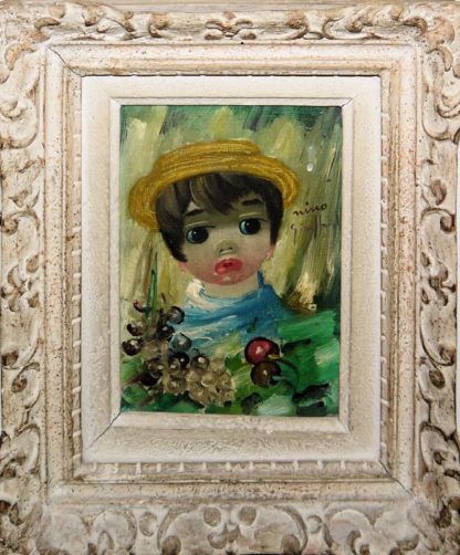 Nino Giuffrida, 1924 Catania, Sizilien, ab 1949 in Paris, Montmartre, ab Beginn der 1950er Jahre in Cannes u. Vallauris ansässig - 2015, Ein Knabe mit Strohhut und Traubenhenkeln, Öl/Lw., 21 x 14,5 cm, gerahmt, dazu die Monographie "L´Enfant gaté de Montmartre" und ein gerahmtes Offset, beide mit Widmungen und Gefälligkeitssignaturen