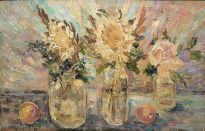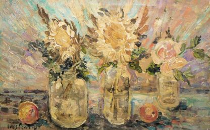 Zum Künstler: Franz Heinrich Louis Corinth kam 1858 als Sohn eines ostpreußischen Gerbers und Landwirts geboren. Nach dem Tod der Mutter studierte er in Königsberg, München und Paris Kunst. Seine Werke waren anfangs vom Realismus und der akademischen Malerei geprägt. Später wandte er sich dem Impressionismus und Expressionismus zu. 1901 ließ er sich in Berlin nieder, wo er die "Berliner Secession" mitprägte und eine Malschule gründete. Seine späten Jahre sind von den Folgen des 1911 erlittenen Schlaganfalls geprägt. Sein Werk wurde expressiver und er war weiterhin sehr produktiv. In dieser Zeit entstanden auch zahlreiche, kraftvolle Blumenstillleben, in denen er sich intensiv mit Farben und Farbauftrag beschäftigte, um den Werken eine Plastizität zu verleihen.