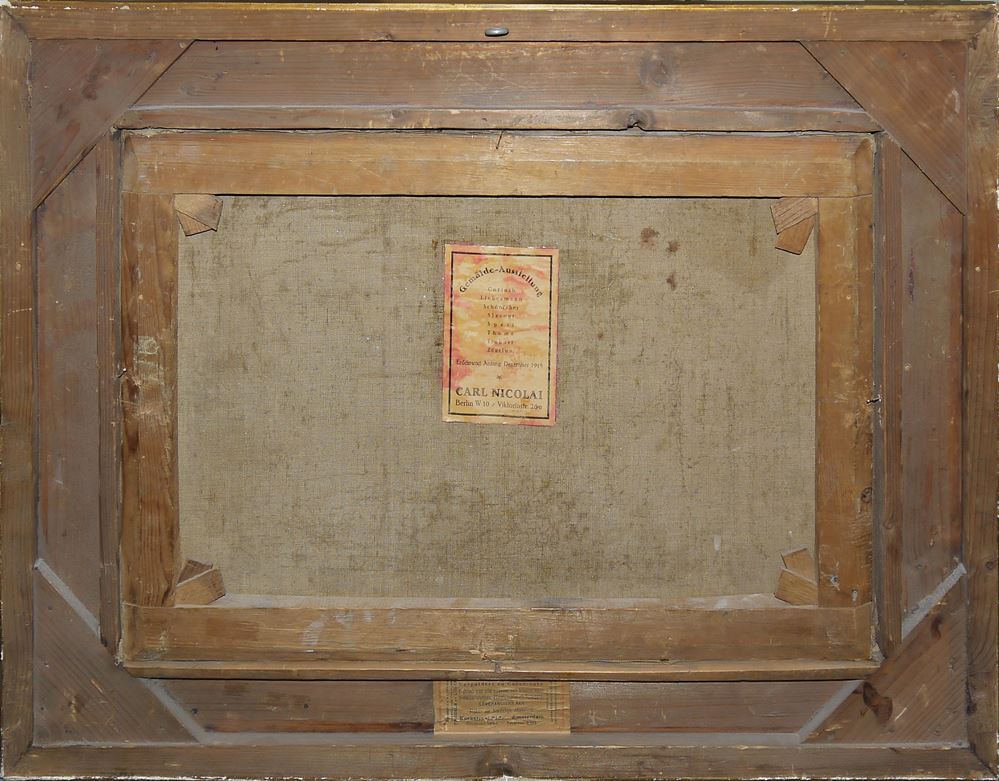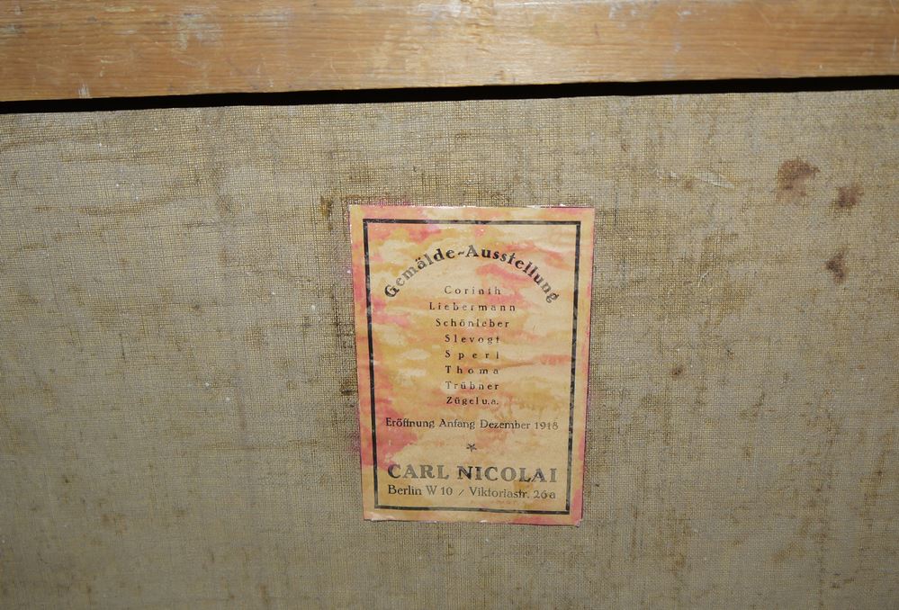 Zur Galerie: Carl Nicolai, 1878-1963, machte sich Ende 1918 mit einer Kunsthandlung in Berlin selbstständig (Cicerone, https://doi.org/10.11588/diglit.24428#0425). Der gelernte Buchhändler konnte davor schon Erfahrungen im Kunsthandel sammeln, u.a. als Mitarbeiter der Kunsthandlung H. Sagert & Co, der Galerie Arnold u. der Amelangschen Kunsthandlung, außerdem als Prokurist bei Gurlitt. Schon vor Eröffnung seiner Kunsthandlung war Nicolai als Besitzer von Gemälden Corinths bekannt (G. Biermann, Lovis Corinth, 1913). Neben Werken von Corinth wurden bei der Galerieeröffnung u.a. auch Arbeiten von Liebermann, Schönleber, Slevogt, Sperl, Thoma, Trübner u. Zügel gezeigt. Die Galerie bestand bis zum Tod Carl Nicolais im Jahr 1963. Lit: Werner J. Schweiger: Gemälde-Galerie Carl Nicolai, https://share.google/qjV5ENHfoRVD5BgpN