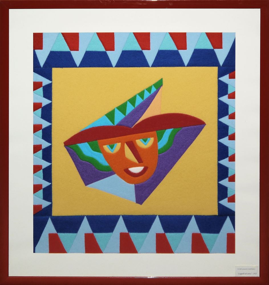 Fortunato Depero, 1892 Fondo - 1960 Rovereto, "Capello di Carta", Filzarbeit, ca. 53,5 x 47,5 cm, bezeichnet, verso gestempelt "Comune di Rovereto", angefertigt wurde die Arbeit in den 1990er Jahren durch eine italienische Manufaktur und diente als Geschenk der Stadt Rovereto an die Partnerstadt Forchheim, unter Glas und P.p. gerahmt