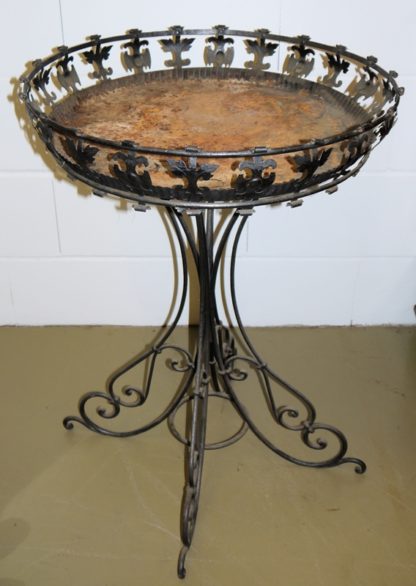 Eisen, runde Stellfläche auf 4 geschwungenen Beinen, H 87, Dm 65 cm