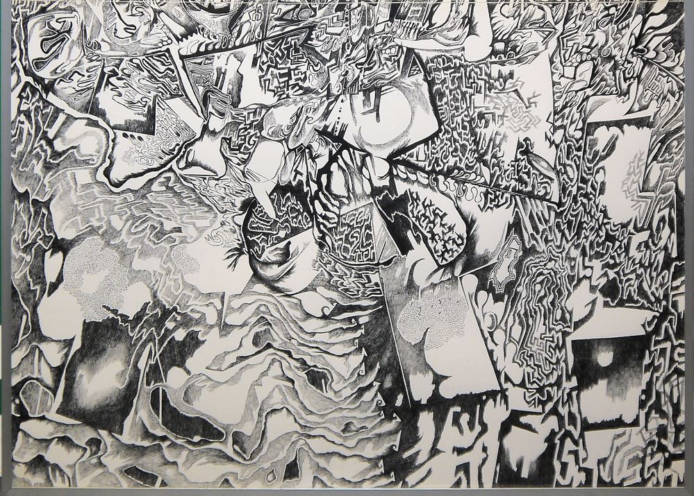 0087-Günter Drebusch, “Labyrinth G.”, große Tuschezeichnung von 1966, gerahmt