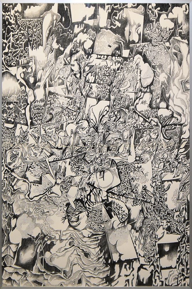 Günter Drebusch, "Labyrinth G.", große Tuschezeichnung von 1966, gerahmt