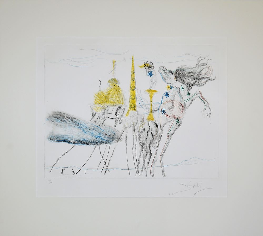 Salvador Dali, 1904 - 1989, Elefanten, Pferd und Obelisk, Farbradierung, 40 x 53 cm, signiert, unter P.p.