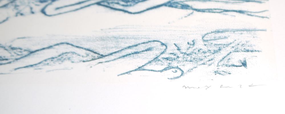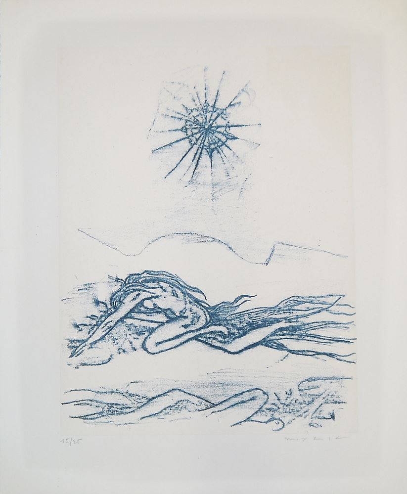 Max Ernst, 1891 Brühl - 1976 Paris, Blatt aus dem Mappenwerk von Jean Tardieu "Le parquet se soulève", aus der Vorzugsausgabe mit 25 Exemplaren, Farblithographie in Blau, 25,5 x 20 cm, signiert, nummeriert 15/25, o. Rahmen
