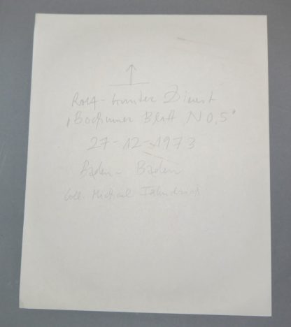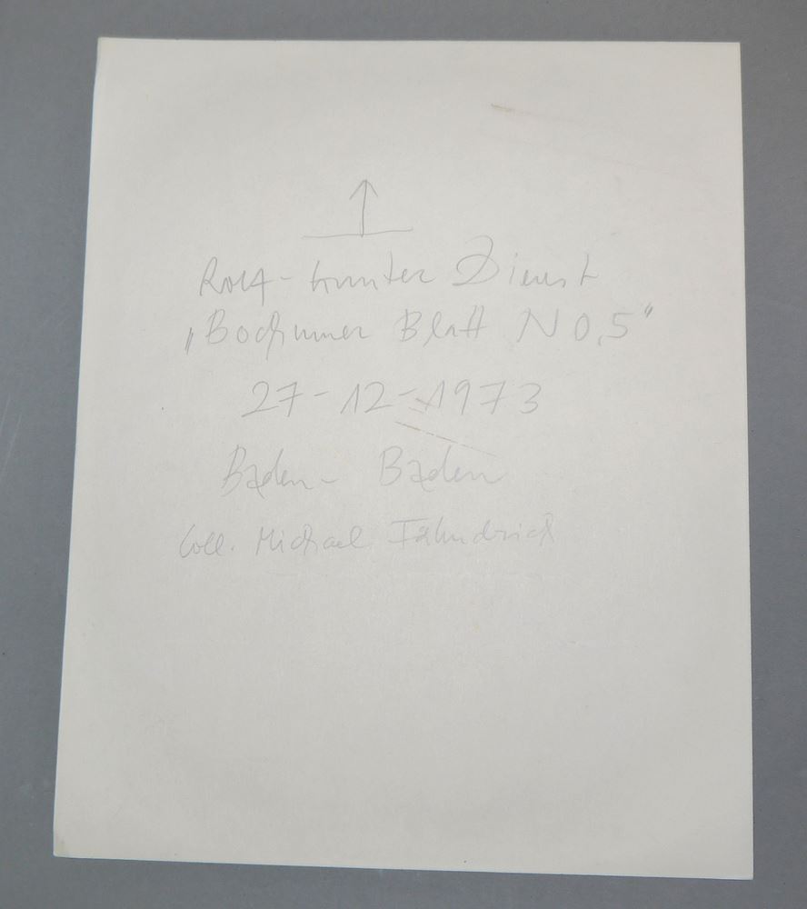 Zum Künstler: Bekannt für Konkrete Kunst, Strukturalismus, Farbfeldmalerei, skripturale Malerei, Gastdozent, 1960-65 zus. m. seinem Bruder Hrsg. d. Kunstzeitschrift "Rhinozeros", 1964-91 Redakteur der Zeitschrift „Das Kunstwerk“, ab 1992 Prof. Akademie d. BK in Nürnberg, 1965-70 gemeinsam mit Klaus Jürgen Fischer, Eduard Micus, Erwin Bechtold und Bernd Berner Mitglied der Künstlergruppe SYN, zahl. Preise.