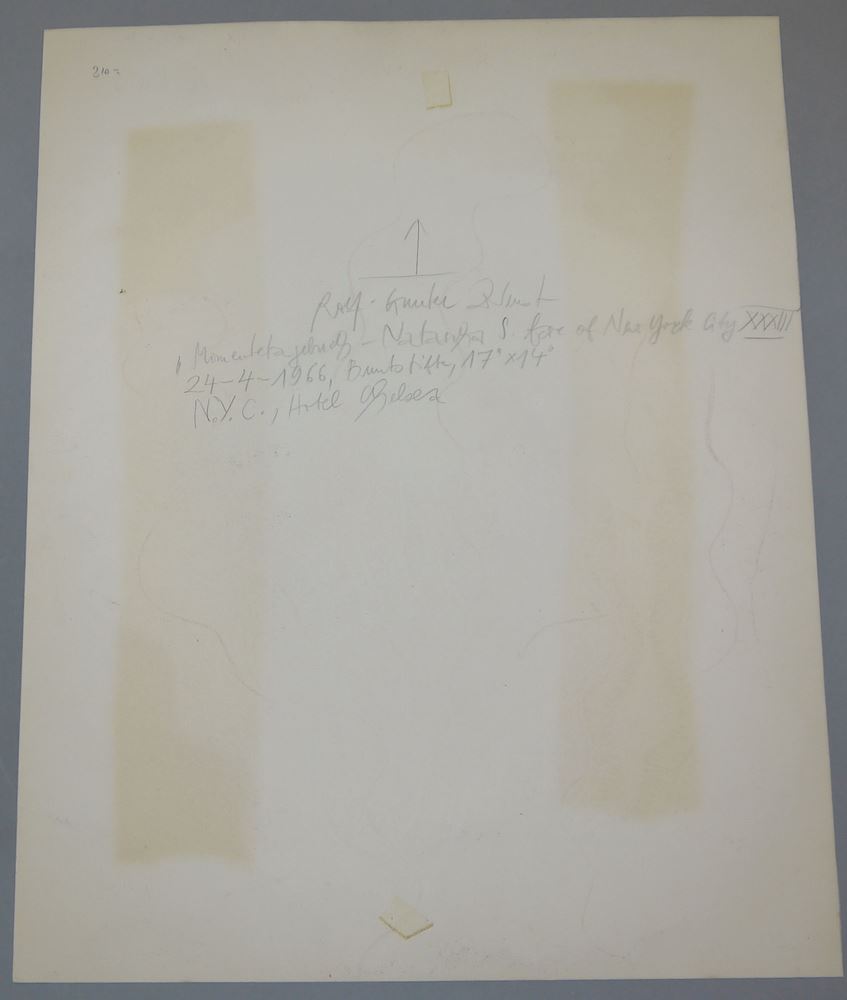 Rolf Gunter Dienst, 1942 Kiel - 2016 Baden-Baden, dt. Künstler, "Momentetagebuch 24.4.66 - Natascha S. far of New York City XXXIII", Buntstiftzeichnung, am Rande flächig lichtgebräunt, 43,5 x 34,5 cm, verso handschriftl. sign., betit., dat., ortsbez. "Hotel Chelsea New York City", o. Rahmen sowie "Bochumer Blatt N 0,5", Farbserigraphie, 25 x 20 cm, verso bez.u.dat. 27-12-1973