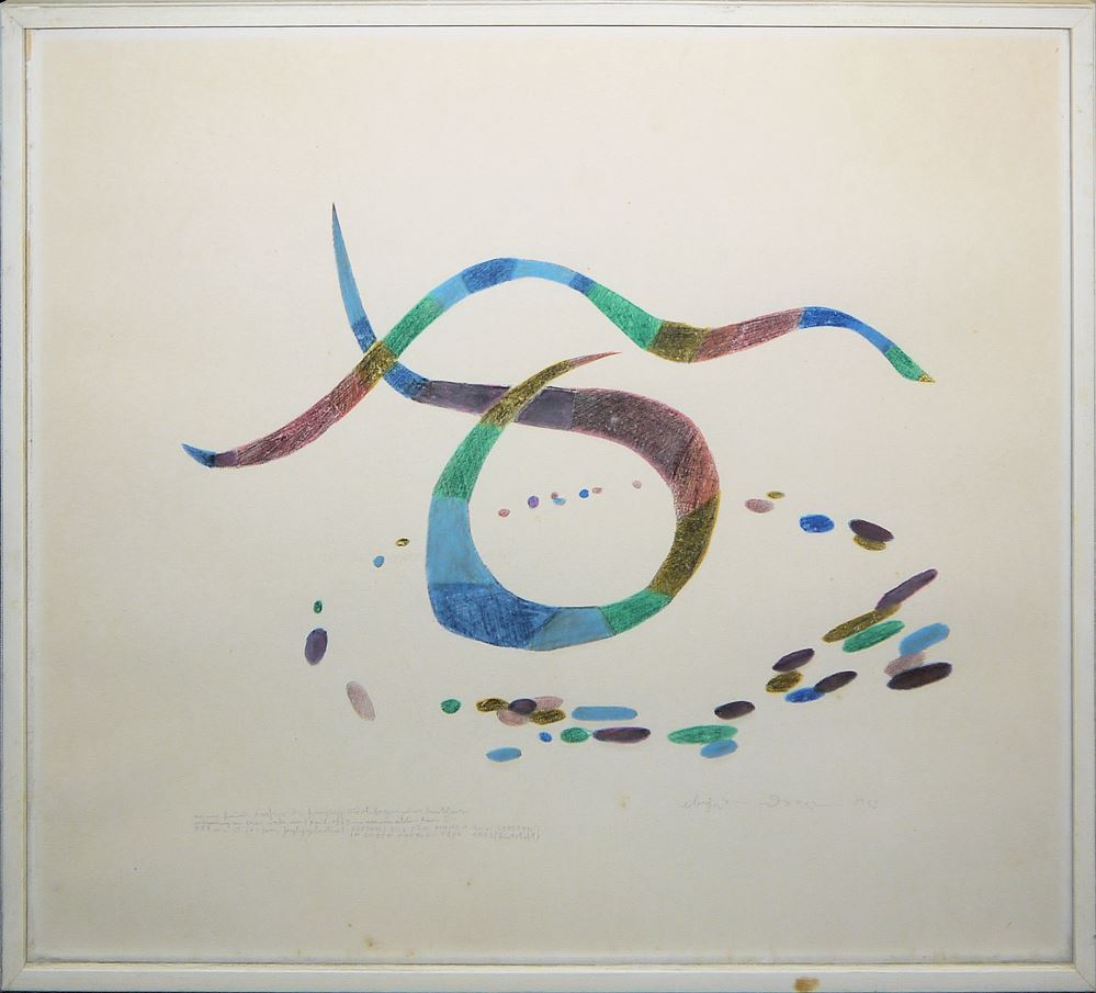 0100-Eberhard Doser, “Akustische Malerei” aus seiner Pariser Zeit, 2 Buntstiftzeichnungen und ein Ölgemälde