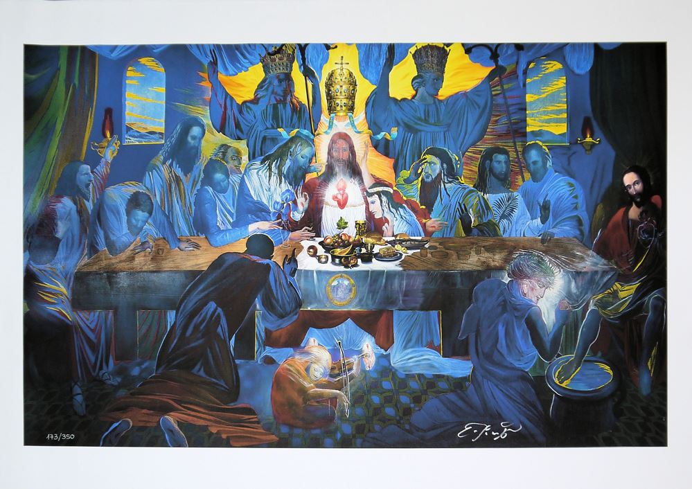 Ernst Fuchs, 1930 - Wien - 2015, österreichischer Maler, Grafiker, Bildhauer, Bühnenbildner, Komponist und Autor. Er gilt als ein Mitbegründer der Wiener Schule des Phantastischen Realismus, hier: Das letzte Abendmahl, Gicleedruck/Lw., 50 x 86 cm, signiert, nummeriert 173/350; Uta Rückenakt, Gicleedruck/Lw., 54 x 38 cm, signiert, nummeriert 28/300; Madonna, Gicleedruck/Lw., 55 x 41,5 cm, signiert, nummeriert 121/300, o. Rahmen