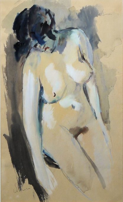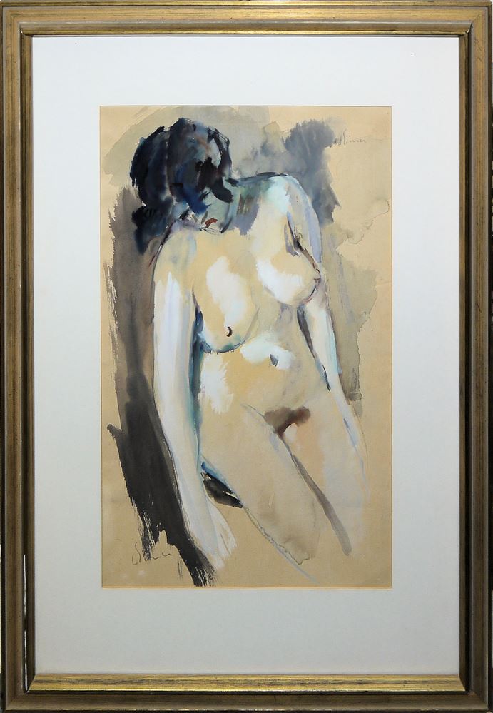 0104-Walter Eimer, Sitzender Frauenakt, Mischtechnik gerahmt & Karl Stohner, Verstecktes Haus, Ölgemälde gerahmt
