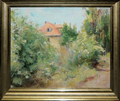 Walter Eimer, Sitzender Frauenakt, Mischtechnik gerahmt & Karl Stohner, Verstecktes Haus, Ölgemälde gerahmt
