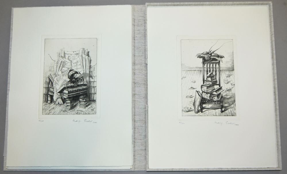 0107-Rolf Escher, “Bücherzeiten”, Mappe mit 8 signierten Radierungen von 2000, num. 15/50