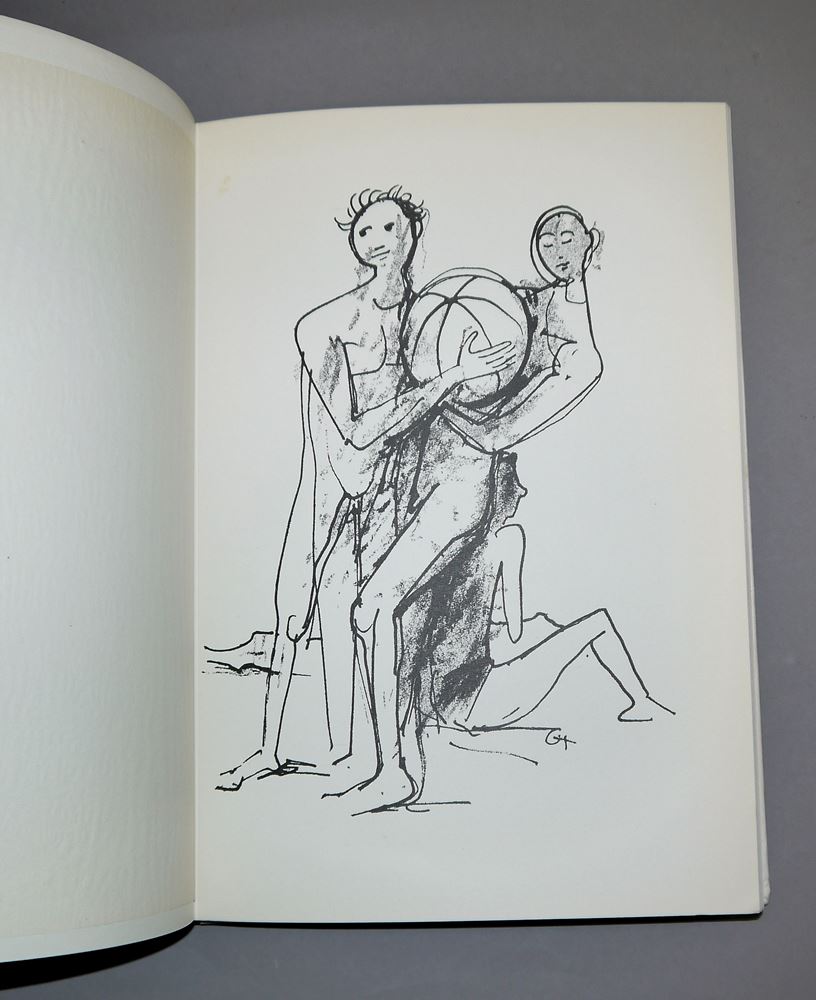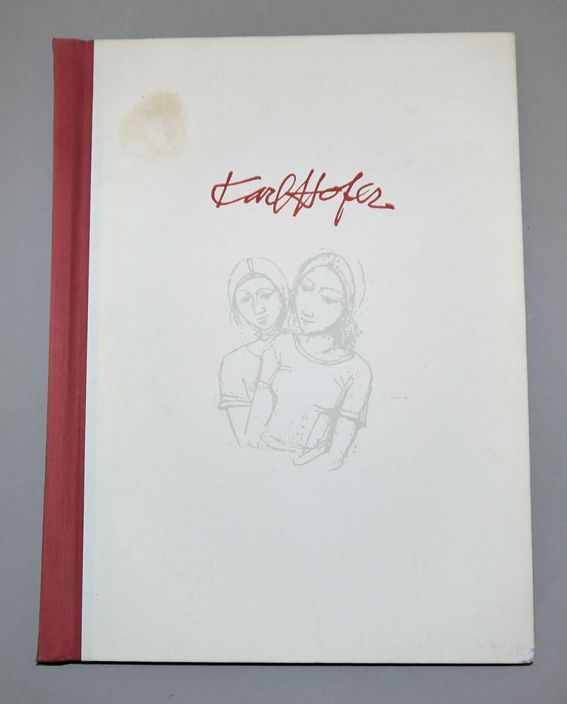 Antiquarisches Kunstkonvolut: Expressionisten-Graphik, (Schmidt-Rottluff, O. Müller, Feininger), Carl Hofer, Georges Braque & expressionistisches Aquarell, Hermann Stenner zugeschr. Karl Christian Ludwig Hofer, auch Carl Hofer; 1878 - 1955, "Karl Hofer Begegnungen, fünfzehn Zeichnungen und sieben Lithographien", nummerierter Graphikon - Sonderband, die Nummer 396/500, vom Künstler sign., Berlin 1950 / Karl Schmidt-Rotluff, 1884 - 1976, "Mädchen aus Kowno", verso gest. "Holzschnitt", 28,5 x 22,5 cm / Otto Müller, 1874 - 1930, Zwei Frauenakte, Lithographie, 28 x 38 cm / Lyonel Feiniger,1871 - 1956, Kristalline Architektur, Holzschnitt, 20 x 25,5 cm / Georges Braque, 1882 - 1963, "Bouquet des fleurs", Farblitho aus "Braque Lithographe", 32 x 24,5 cm sowie Expressionistischer Frauenkopf, Aquarell auf Seidenpapier, Hermann Stenner, 1891 - 1914, zugeschr., 40 x 30 cm, r. o. Ecke verloren, in der Mitte knickfaltig, verso handschr. bez. "Die Brücke"