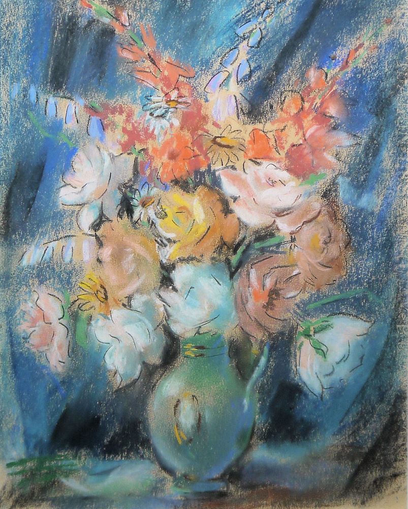 0110-Pierre Le Faguays, Blumenstillleben, Pastell, gerahmt