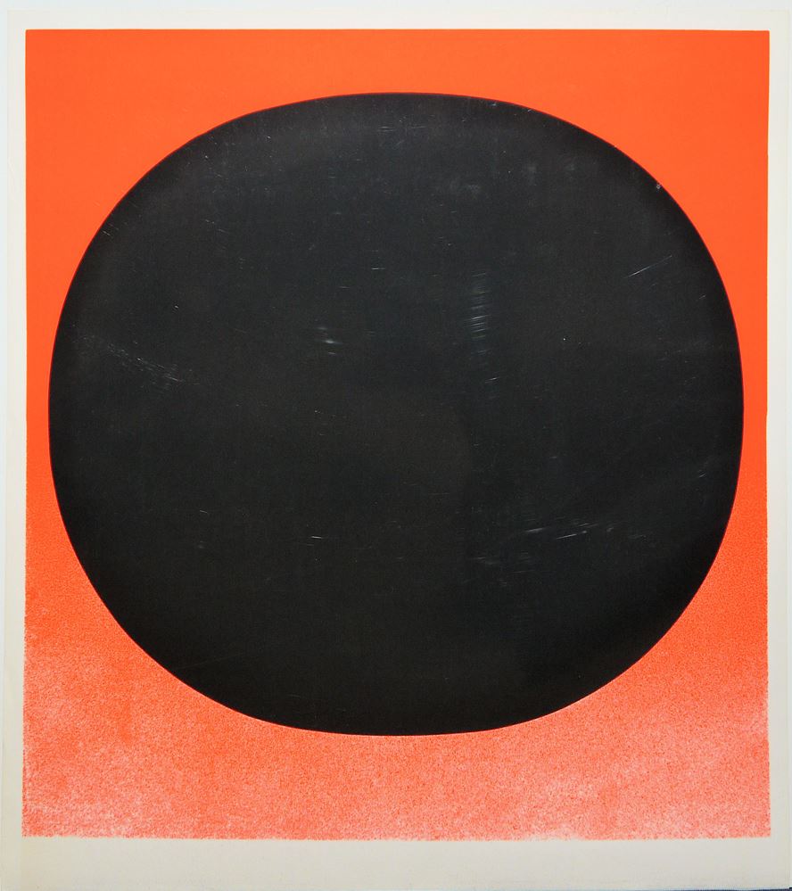 Rupprecht Geiger, Schwarzer Kreis auf Rot-Orange, Farbserigrafie, 1968